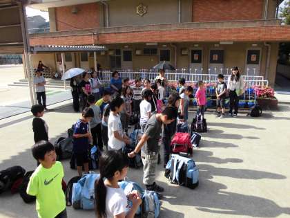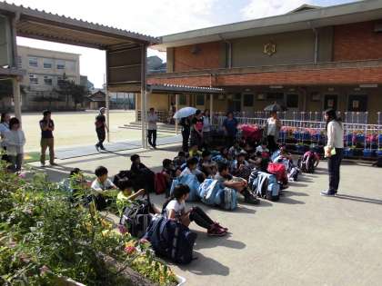 いつもより早く登校し,みんな元気に わくわく・ドキドキの出発式でした。