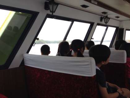 真珠の筏がたくさん浮かんだ湾の中を船は進みます。海風が潮の香りを運んできて,心地よい気分です。 さあ,みさきの家は もうすぐ目の前です。