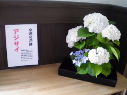 6月17日 今週の花は「アジサイ」です。6月〜7月にかけて公園や庭によく咲いています。梅雨時の雨の中によく似合う花です。学校でも,観察池の周りや体育館の横に咲いています。ガクアジサイもきれいです。