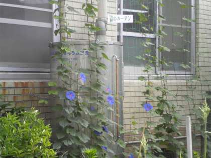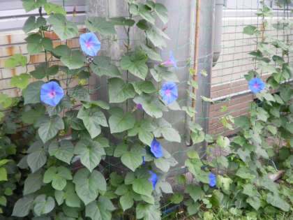 6月26日 昨年植えた宿根性の「オーシャンブルー」の琉球アサガオが早くも多くの花を咲かせています。根や地下茎で越冬する宿根性なので,越冬したものが春先から徐々に伸びてきました。昨年よりたくましいオーシャンブルーになりそうです。