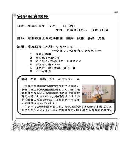 なお家庭教育講座終了後,学級懇談会を開催します。こちらの方へのご参加もよろしくお願いします。