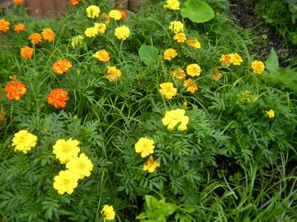 7月11日 いよいよ夏本番です。花壇のひまわり,マリーゴールド,オーシャンブルーと夏を代表する花々がきれいに咲いています。子ども達に「夏ですよ!」と声をかけているようです。