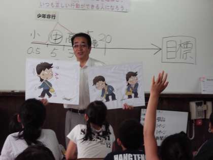 上京警察署のスクールサポーターに来ていただき,法律のこと… 暴力のこと… イジメのこと… たくさんのことを教えていただきました。正しい生き方をしているか?大人も,子どもも自分で確かめる必要がありますね。夏休みを前に,ちょっとした心の油断