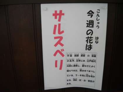 9月8日 今週の花は「サルスベリ」。学校の正門のところにきれいに咲いています。中国南部原産の落葉小高木で,江戸時代以前に日本に伝わってきました。色は,淡紅・紅・白・紫などがあります。
