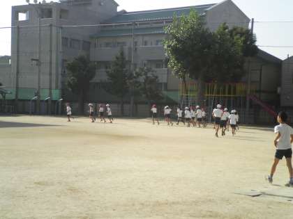 9月9日 さわやかな朝,午前8時過ぎには6年生の子ども達の元気な姿がありました。先日から大文字駅伝予選のため,全員で頑張っています。11月当初まで頑張ります。