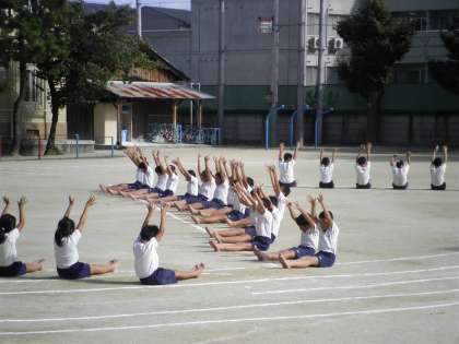 9月9日 5・6年生の組体操もいよいよ運動場での練習になりました。体育館で基礎的な動き,個人の練習などをしていました。いよいよ全体の動きに入りました。音楽に合わせて力強い動きができていました。本番が楽しみです。