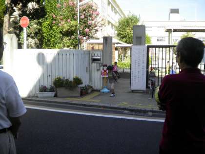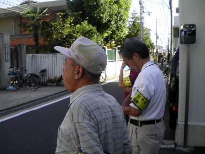 9月9日 毎日放課後,住民福祉協議会の傘下の諸団体が曜日を決めて放課後子ども達の下校を見守ってくださっています。今日は,自主防災の方々が下校を見守ってくださいました。ご苦労様です。