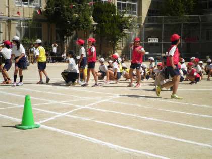 9月27日 第一リレー・第二リレー・第三リレーとたてわりリレーは,3つのあります。どのれれーも4チームが走ります。全校の子ども達が走ります。綱引き,大玉ころがしリレーと同じぐらい盛り上がりました。