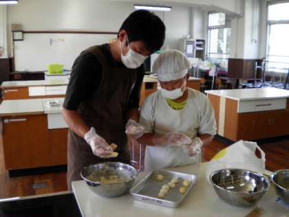 調理実習でお団子作りにチャレンジしました。くるくる丸めて玉にするのが難しいですが,根気よくできました。