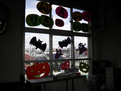 10月16日 もうすぐハローウィンです。学校の図書館は,ボランティアの方の協力でハローウィンの飾りがあちことにしてあります。休み時間や放課後に本を読みに来た子ども達は大喜びです。