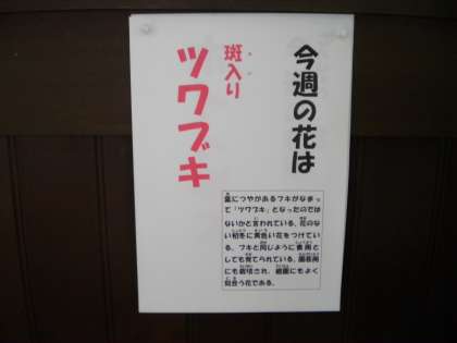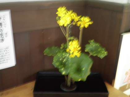 10月22日 今週の花は「ツワブキ(斑入り)」です。初冬からよく庭園に咲いているのが見られます。つやのあるフキがなまってツワブキになったということです。食用としても育てられているそうです。