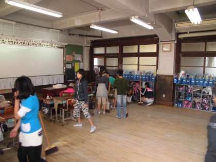 休み時間が終わると,気持ちと行動をしっかり切り替えて,掃除することができています。きれいな教室で学習にも集中することができています。