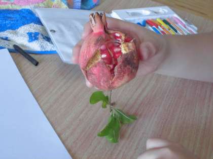 学校のふれあい広場にザクロの木があります。校長先生に実をお借りして,図工の時間にザクロの実を描きました。不思議な形をしているので,楽しく写生するにはもってこいの被写体です。描いた絵はたんぽぽ学級の掲示板にはりました。