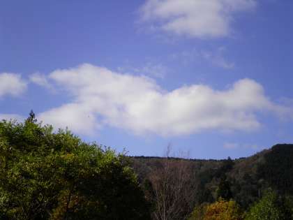 11月4日 最高のコンディションで,山々が迎えてくれました。宿泊棟のの前でさわやかな秋空のもと,おいしいお弁当を食べます。