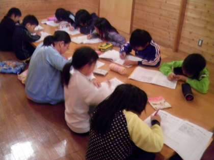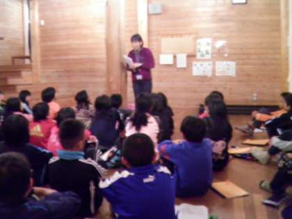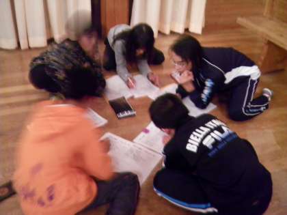 11月4日 第一日目の最後の活動は反省会です。第5棟のフロアで各班が一日を振り返って話し合いました。けがもなくみんな元気に過ごせたことに感謝するとともにみんなで協力して活動できたことに感謝しました。今日は,ぐっすり寝ましよう。朝が早いよ!