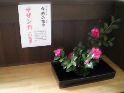 11月6日 今週の花は「サザンカ」です。山茶花と書いてサザンカと読みます。10月中旬から花が咲き始めます。垣根によくある花で身近でよく見かけます。ツバキに似ていますが,葉が少し小さいです。