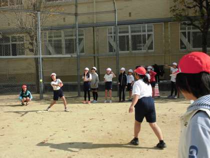 体育でベースボールの学習をしました。今日はルールやゲームの進め方を知り,ゲームを楽しみました。次の時間からはチームが勝つための攻め方や守り方を工夫して考えていきます。
