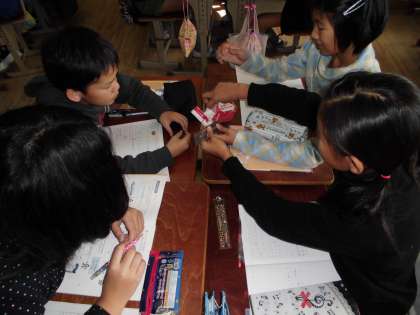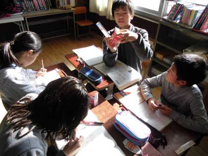 算数の学習で牛乳パックに入る水の体積を求めました。