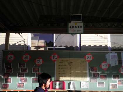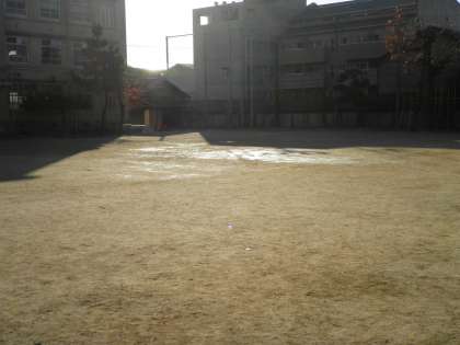 12月3日 今朝の気温は7時現在2度と昨日よりぐんと低くなりました。子ども達が登校してくるころには,気温7度,屋内8度まで上がってきました。運動場も今朝は凍てていました。