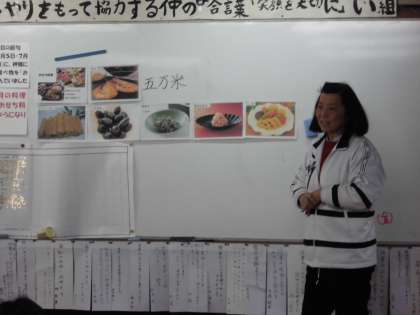 チャレンジタイムの時間におせち料理に込められた意味についての話を聞かせていただきました。