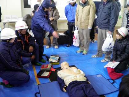 12月7日 消火器訓練,救急訓練,AEDを使った救急法訓練など参加者が各グループに分かれ,体験しました。