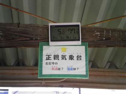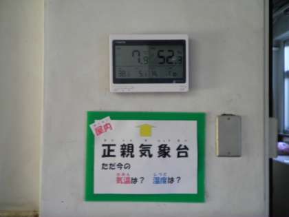 12月8日 今朝も朝から冷え込んでいます。その中を子ども達が元気に登校してきました。授業時間外で多くのことを学ぶ環境のひとつとして設置している掲示用温度計(屋内・屋外各一台)。『今日は,登校してきたとき3度だったよ。』と1年生。『葉ボタンの中が凍っていたよ。』と3年生。子ども達は,いろいろなところで学んでいます。