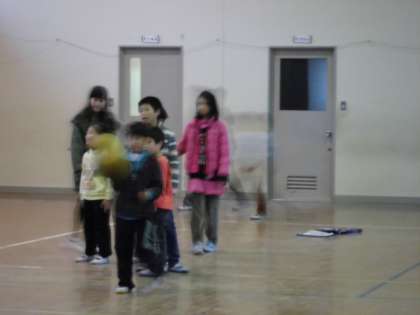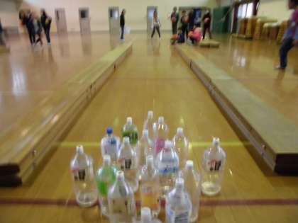体育館ではボーリングのコーナーで仲良く体験しました。