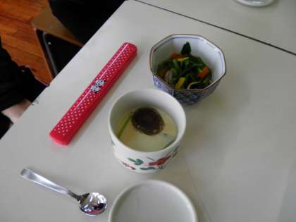 12月11日 昆布やカツオブシからだしを取出し,それを使ったお料理を勉強しました。出来上がった茶わん蒸しは一味もふた味もちがって,かったといっていました。