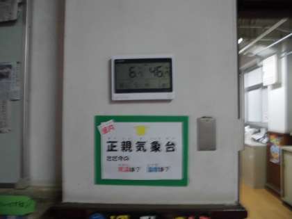 12月15日 今朝の8時現在気温2度,屋内気温6度。雪は降っていませんが厳しい寒さが続いています。学校園の葉ボタンも凍っていました。