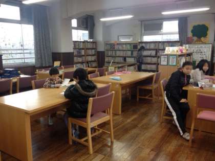 12月15日 今日は放課後に図書館で,「らんらんお話の会」がありました。図書ボランティアの方がじゅうたんフロアで読聞かせをしてくださいました。子ども達も静かにじっくり聞いていました。寒くなってきたので,放課後の図書館利用も増えてきました。ボランティアの皆さんのご協力,ありがとうございます。