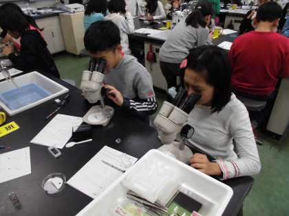 顕微鏡を使って詳しく観察しました。