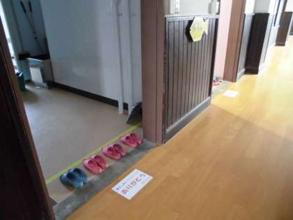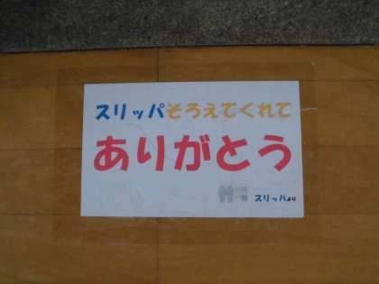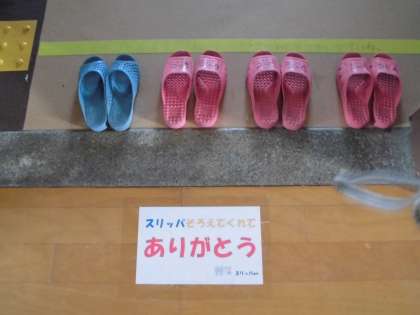 1月9日 1月から子ども達のトイレの出入口にスリッパをそろえるように「スリッパをそろえてくれて ありがとう スリッパより」というシールを張りました。自分の使ったものを大切にすることを学んでほしいものです。また,次に使う人への思いやりも学んでほしいものです。ひつじ年です。精一杯やさしい心を育てましよう。