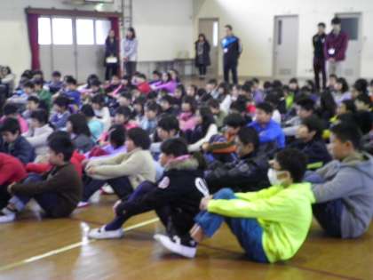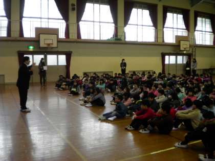 1月15日 神戸・淡路大震災のような大きな地震があった場合は,どう対応していけばいいのか,学校の場合と家での場合と違うので,全校のみなさんへの今日の宿題は家ではどういう対応をすべきか,お家の人と話し合ってください。