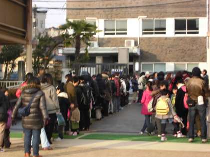 1月17日 今日は,子ども達と保護者約120名で,西京極のアクアリーナへスケート教室に行きました。朝8時過ぎ,PTAの保健体育委員さんに説明を受け,参加者は2台のバスに分乗して出発しました。けがのないように注意しながら楽しんで来てください。