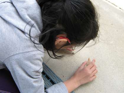 子どもたちの目は「ダンゴ虫」に集中しているようですが・・・。