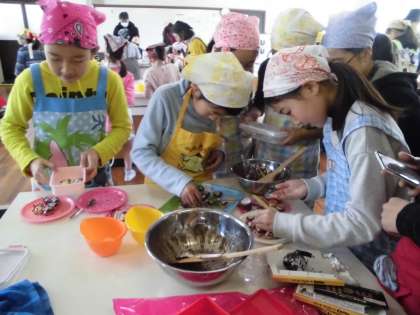 2月14日 今日の土曜学習は,チョコレートを使ったお菓子づくりでした。チョコレートをお湯で溶かし,マーガリンや飾り用の砂糖菓子などデコレーションを加えて素敵なチョコレートが出来上がっていました。