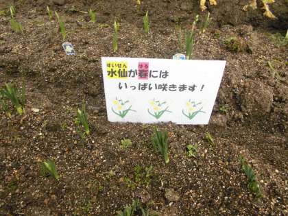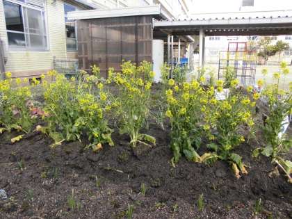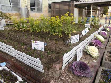 2月14日 立春が過ぎ,一気に春が近づくかと思っていましたがこの2,3日雪がチラチラ寒くなっています。しかし,春は少しずつやってきています。学校園・学級園では,水仙,チューリップの芽が伸びてきています。ハナナもつぼみから花が咲いていてきれいです。