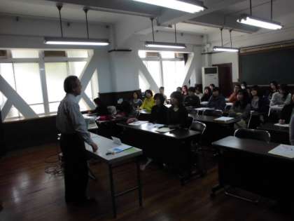 保護者の皆さんは家庭教育学級に参加していただきました。上賀茂幼稚園の伊藤喜昌園長先生を講師にお招きし,「家庭教育で大切にしたいこと〜やさしい心を育てるために〜」をテーマにご講演いただきました。歌あり,笑いあり,ほろっとくるお話ありでとても参考になる親子関係の築き方にかかわるお話でした。 伊藤園長先生・保護者の皆さん