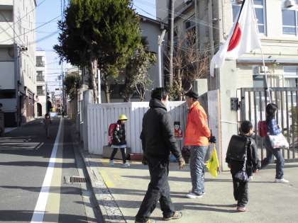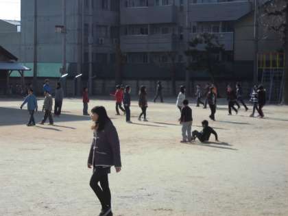 3月11日 今朝は8時現在気温4度。寒い朝となりました。花壇にはうっすら雪も残っています。寒い中,スクールガードの方も子ども達の登校を見守ってくださっています。多くの子ども達が運動場で元気に遊んでいます。
