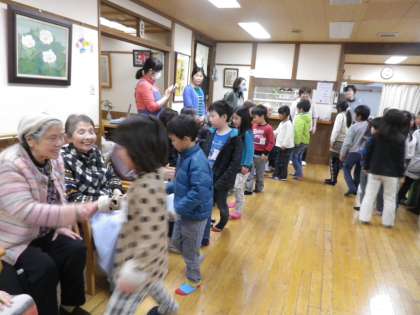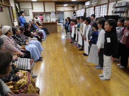 学校の近くにあるデイサービスセンター「やまざと」に行き、交流をしました。自己紹介&学校紹介クイズをしたり、「握手でじゃんけんゲーム」をしたりして、楽しく過ごしました。最後は、歌い継がれている歌を一緒に歌いました。はじめは緊張していた子ども達も、おじいちゃん・おばあちゃんがとても優しく声を掛けて下さるのでどんどん元気になってきました。帰る頃には,満面笑顔。「楽しかった!」「また、ぜったい遊びに行く!」と、とてもうれしそうでした。