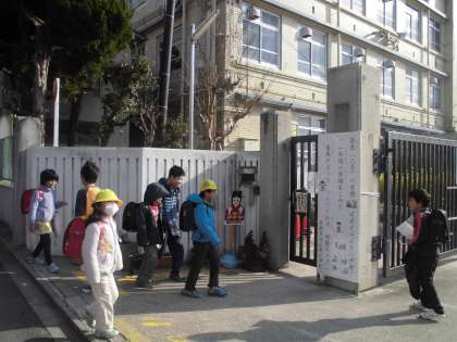3月24日 午前8時現在気温8度。子ども達が南から北から浄福寺通りを登校してきます。今日は平成26年度修了式があります。205日子ども達は学校へ登校してきました。卒業生31人が先日20日に卒業したので,今日は151人の登校です。