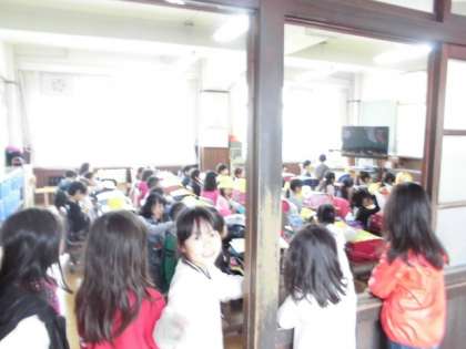 ちょっと寒い朝でしたが,1年生も全員元気に登校できました。登校後,学校生活の指導がありましたが,かわいい1年生が気になって上級生が様子を見にきていました。