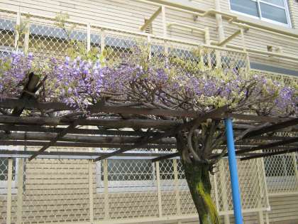 さわやかな風が吹く季節となり,学校の小さな藤棚の藤がきれいに咲いています。