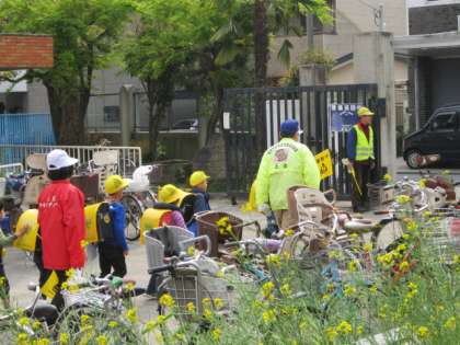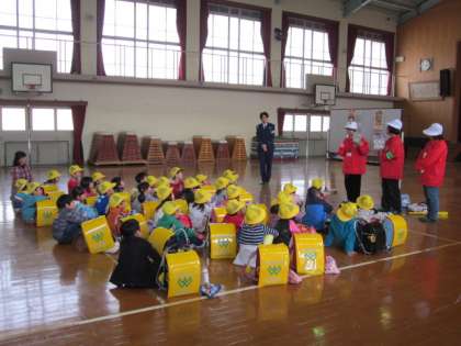 上京警察署の警察官の方や地域の交通安全会,平安レディースの方々からのお話を聞き,安全に気をつけて下校しました。