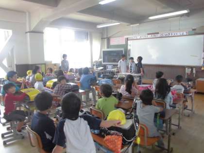 1年生をむかえて,はじめての町別集会がありました。近所の顔なじみの子どもばかりです。しっかり顔と名前を覚えて,出会ったら挨拶できるといいですね。リーダー・副リーダーが1年生の教室まで迎えに行ってくれました。みんな頼りになるリーダーばかりです。