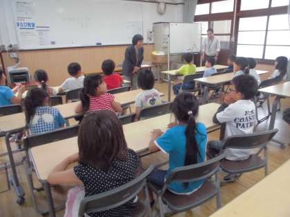 来週19日(火)から放課後学び教室が始まります。今日は教育委員会生涯学習部から放課後学びプランコーディネーターの先生に来ていただき開講式をしました。