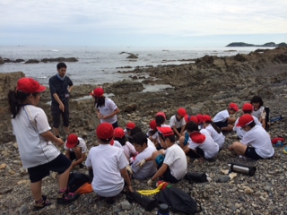 曇っていたり,時折日がさしたりで,あまり暑すぎず,寒くもなくちょうど良い天気でした。子どもたちは,磯がにや いそぎんちゃく,あめふらし,馬糞うになどを見つけ,歓声を上げていました。