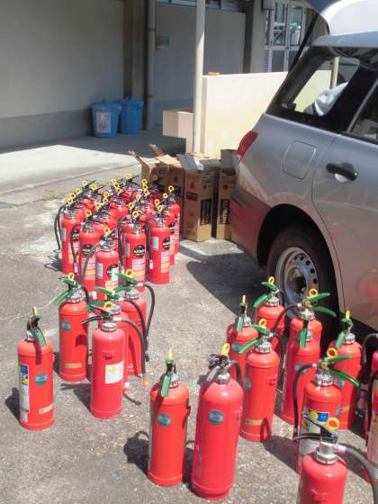 消火器を全て新しいものに取り替えました。どの消火器も数年の間、もの言わずとも正親校のためにどっしりと座ってくれてたものです。使うことなく役目をおえてくれて,ありがとうと感謝です。