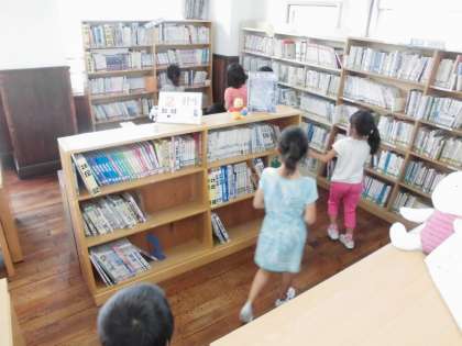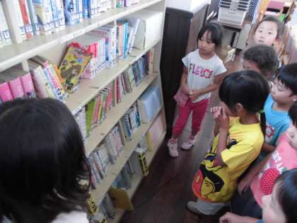 図書委員会主催で,低学年に向けて本探しゲームをしました。