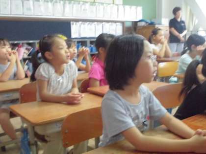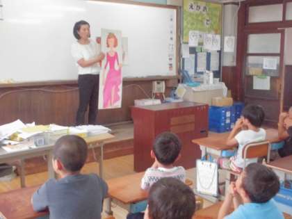 今日の給食は楽しみにしていたメニューです。2年生はランチルームでおいしくいただいた後,栄養教諭の先生から紙芝居で野菜や牛乳を摂取する大切さについて学びました。みんな紙芝居の世界に入り込んで聞いていました。好き嫌いなく食べられるといいですね。